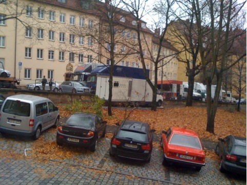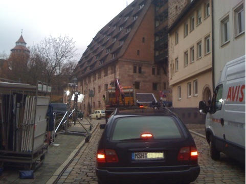 Endlich mal wieder ist Franken Drehort für einen Kino-Film: In Nürnberg dreht Elmar Wepper “Dreiviertelmond”! In der Gegend um die Kaiserstallungen (Jugendherberge) und den Paniersplatz ist derzeit alles abgesperrt, Scheinwerfer, Stromaggregate und lauter wichtige Leute! 😉